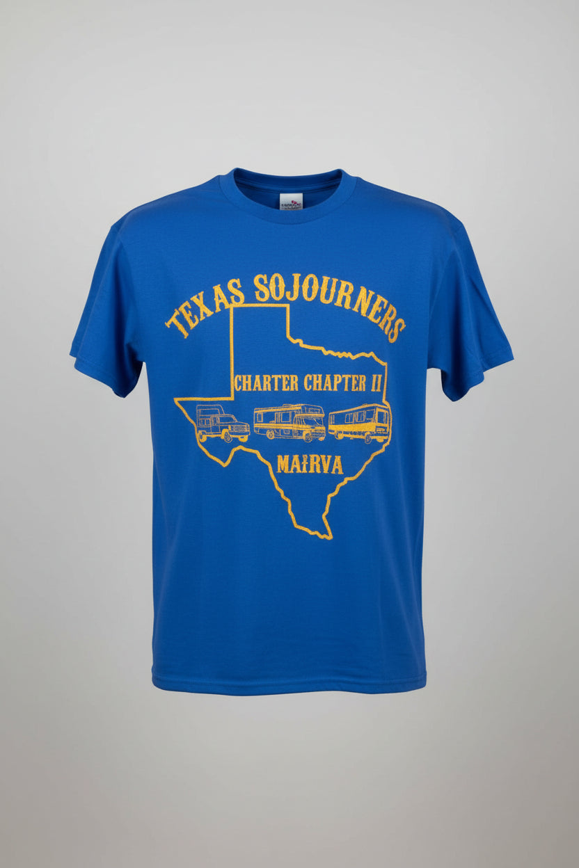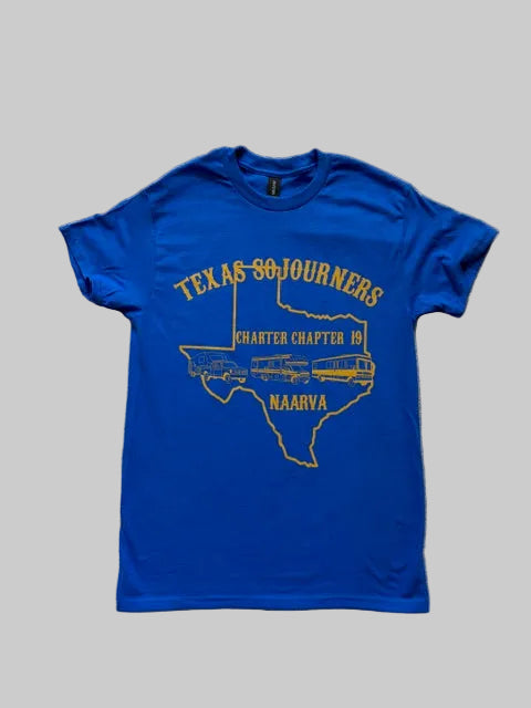 Texas Sojourners Blue Adult T-Shirt; This shirt is unisex, loose fit on ladies. Sizes available in Small-3X.